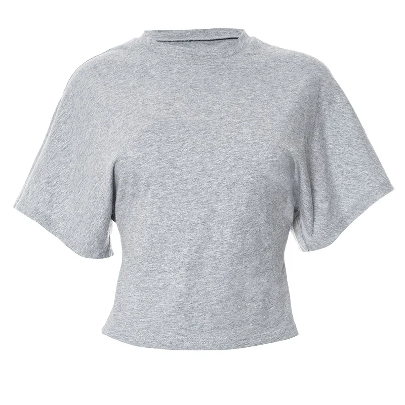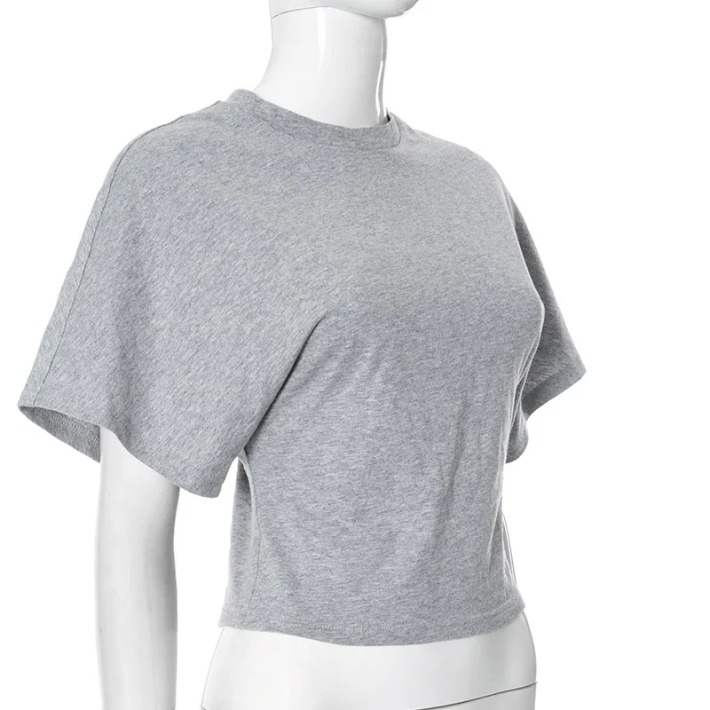 Effortlessly chic, this cropped T-shirt brings a touch of softness and modern simplicity to your everyday style.